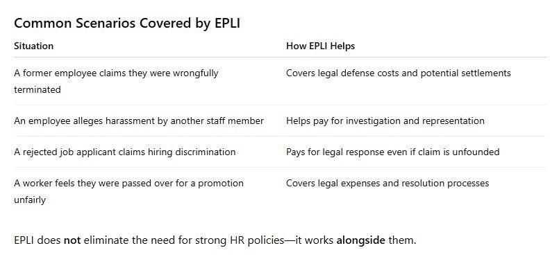 By investing in EPLI, your business is not just protecting itself—it’s reinforcing a workplace environment built on fairness, professionalism, and accountability.